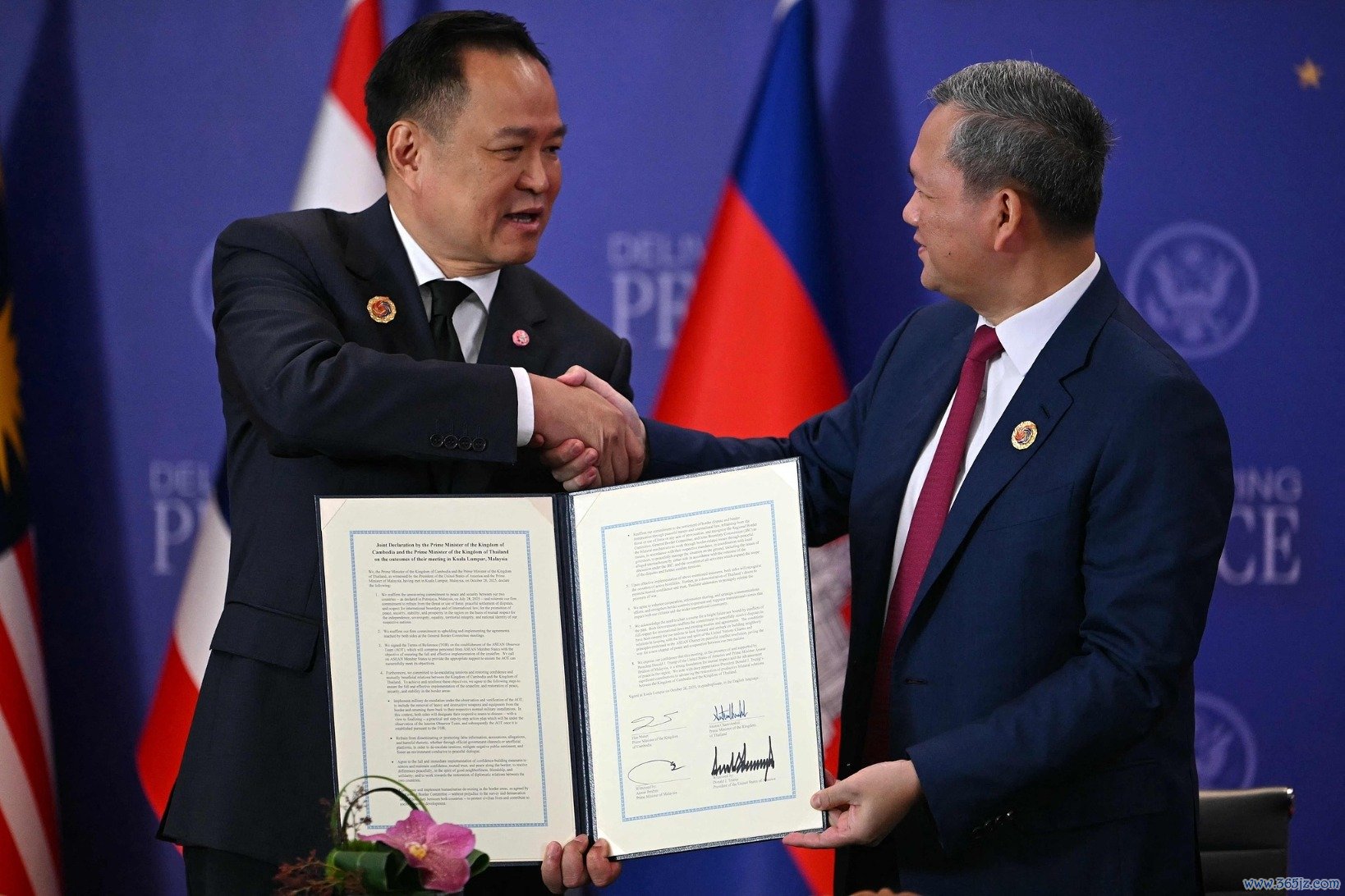 当地时间26日,泰国和柬埔寨就两国边界和平问题在马来西亚吉隆坡签署联合声明。