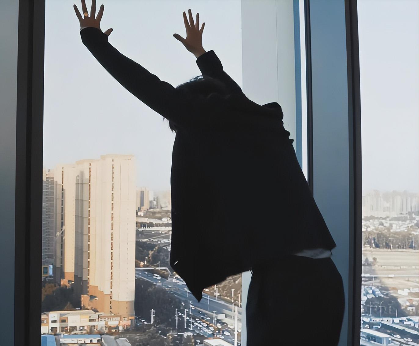 一通大吼大叫,踢翻凳子,转身扑在落地窗上,像个发狂的大蚂蚱。
