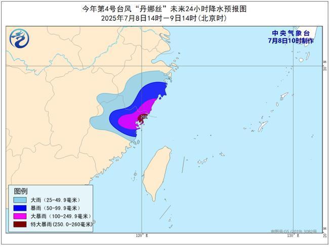 今年第4号台风“丹娜丝”(热带风暴级),今天13时中心位于温州偏东方向约118公里的海面上,预计将于今天傍晚到夜间在台州到宁德一带沿海登陆。